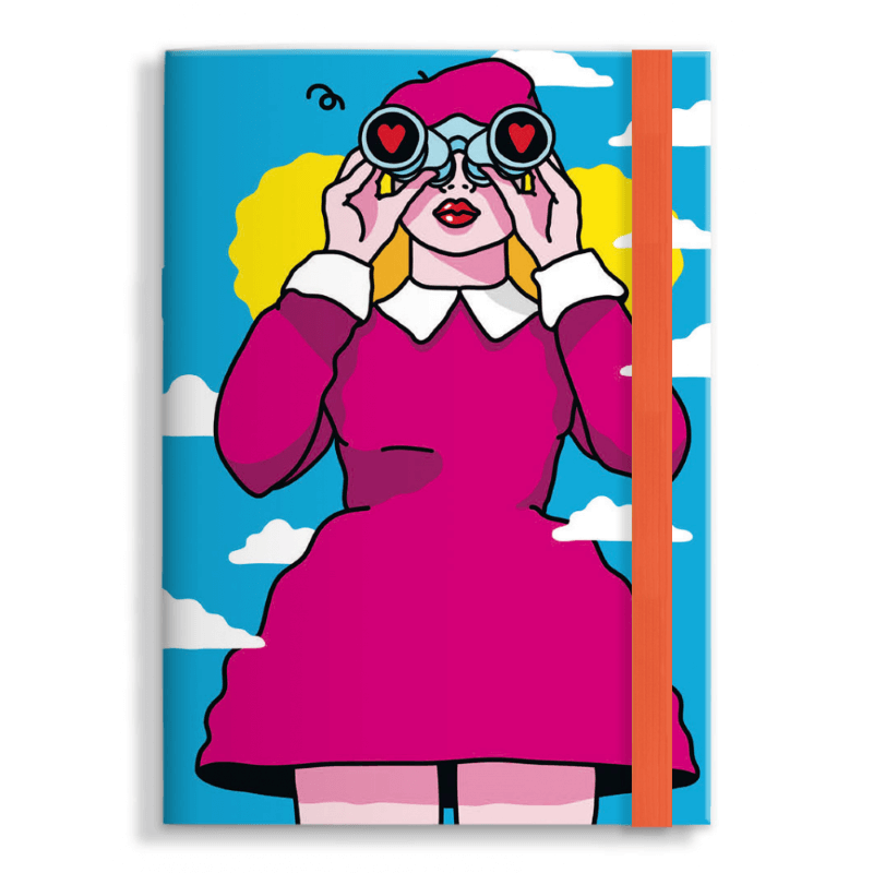 Notebook de 64 pages vierges dont la couverture reprend un dessin humoristique de l'artiste Xaviera Altena. Un élastique coloré amovible vient fermer le carnet.